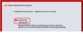 V závislosti na chybě se může zobrazit zpráva s výzvou, abyste nevypínali napájení přístroje, protože přístroj po výskytu chyby ukládá systémové informace. V takovém případě nevypínejte přístroj, dokud se data neuloží.