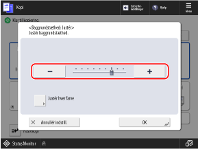 Når skyderen vises som vist nedenfor, skal du trykke på knappen [+] eller [-] for at flytte skyderen til højre eller venstre.