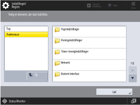 Indstillinger/Registr.] på kontrolpanelet. Brug denne skærm til at konfigurere maskinens forskellige indstillinger.