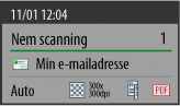 Viser antallet af destinationer*1, destination, originalstørrelse, opløsning, 2-sidet og filformatindstillinger.