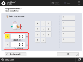 Når der registreres hyppigt anvendte ikke-standardstørrelser, kan du hente disse frem ved at trykke på [S1] til [S5].