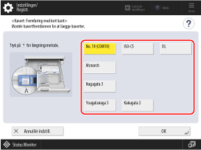 Afhængigt af størrelsen på konvolutterne kan [Næste] blive vist. Tryk på [Næste], indtast konvoluttens flaplængde, og tryk derefter på [OK].