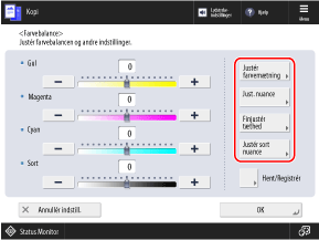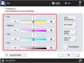 Hvis du ofte bruger originaler med en bestemt farvetone, kan du registrere de justerede farveindstillinger. Du kan derefter hente indstillingerne på skærmen for justering af farvebalancen, hvilket sparer dig besværet med at justere farvebalancen hver gang.