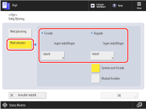 Vælg [Samme som Forside] for at konfigurere bagsiden med de samme indstillinger som forsiden.
