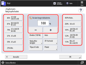 Ved manuel indstilling af kopiforhold