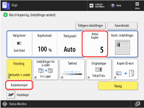 Indtast antallet af kopier på kopiskærmen, og tryk på [Kopieksempel]. Kopieringsskærmen