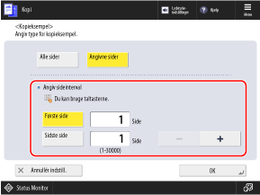 Når du laver et kopieksempel for specificerede sider, udskrives antallet af kopier, som du indtastede i trin 2.