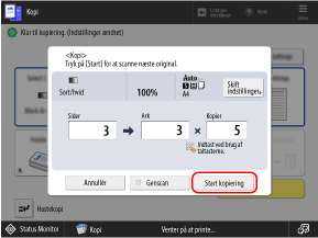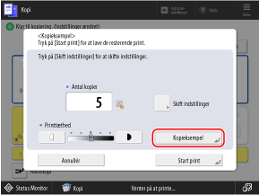 Når du laver et kopieksempel for alle sider, trækkes en kopi fra antallet af kopier, som du indtastede i trin 2, og de resterende kopier udskrives.