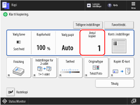 På kontrolpanelet skal du trykke på [Kopi] på skærmbilledet [Hjem]. [Hjem]-skærmbilledet