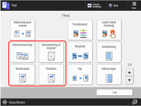 Tilføjer kopisætnumre (for at angive rækkefølgen af kopisættene) ved kopiering. Disse kan bruges som kontrolnumre for hvert kopisæt.