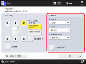 Du kan trykke på [Vælg detaljer] for at ændre de sider, som vandmærket skal udskrives på, eller ændre printmetoden (gennemsigtig eller overlejret udskrivning).