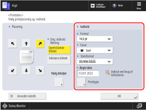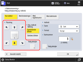 Du kan trykke på [Vælg detaljer] for at finjustere printpositionen eller ændre printpositionen for tosidet kopiering.