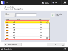 Du kan konfigurere indstillingerne til at gemme data fra kopierede originaler i mailboksen på maskinen. Du kan også konfigurere indstillingerne til kun at gemme dataene uden at lave kopier.