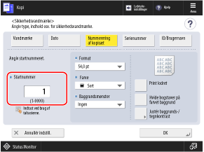 Du kan integrere kopisætnumre (for at angive rækkefølgen af kopisættene). Disse kan bruges som kontrolnumre for hvert kopisæt.
