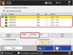 Vælg en modtaget fax, og tryk [Detaljer] for at kontrollere detaljer såsom faxens størrelse.