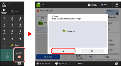 Hvis [ Annullér] trykkes, når der er flere afsendelsesjob