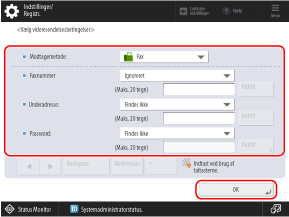 Angiv videresendelsesdestination eller lagerplacering, og tryk på [OK].