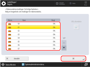 Vælg den fortrolige faxindbakke, der skal bruges som videresendelsesmodtager eller lagerplacering, og tryk på [OK].