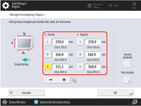 Indtast de målte værdier i [b] og [h], indtast værdien angivet nedenfor i [c], og tryk på [OK].