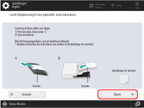 Hvis du ikke ønsker at konfigurere testsidens indstillingerne, skal du trykke på [Næste] uden at konfigurere indstillingerne.