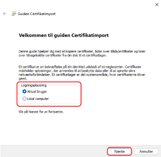 Skærmbilledet [Certifikatimportguide] vises.