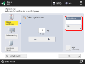 Tryk på [Skift], vælg størrelsen på originalen, og tryk på [OK].