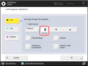 Disse tegnformatindstillinger anvendes kun på prøveprintet til justering af kontrasten. Indstillingerne anvendes ikke på det vandmærke, der er integreret, når dokumenter rent faktisk udskrives eller kopieres.