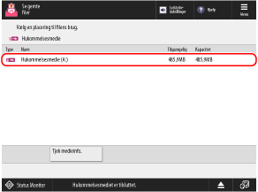 Tryk på [Tjek medieinfo.], vælg USB-hukommelsesenheden, og tryk på [Detaljer] for at kontrollere serienummeret og den tilgængelige kapacitet på USB-hukommelsesenheden.