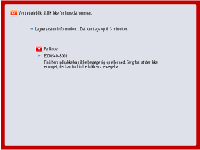 Afhængigt af fejlen vises der muligvis en meddelelse, der beder dig om ikke at slukke for strømmen til maskinen, da maskinen gemmer systemoplysningerne, efter fejlen opstod. I dette tilfælde må du ikke slukke for maskinen, før dataene er gemt.