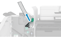 I dette afsnit beskrives, hvordan du udbedrer papirstop i den indvendige finisher. Følg instruktionerne på kontrolpanelet for at kontrollere placeringen af papirstoppet og fjerne det fastklemte papir.