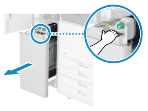 Åbn den hæftningsfinisherens frontdæksel.