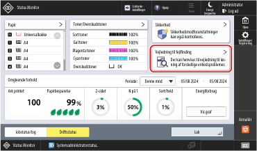 Supportoplysningerne til fejlfinding af problemer med udskrivning, faxning og afsendelse af scannede data kan ses i [Vejledning til fejlfinding] i maskinens driftsstatus.