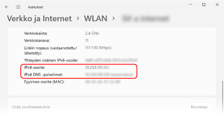 IP-osoitteen ja DNS-palvelimen tarkasteleminen