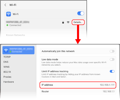 Napsauta [Details] ja tarkista IP-osoite näytöltä.