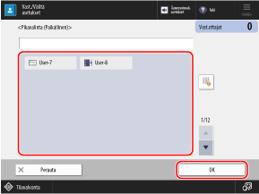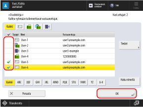 Merkitse niiden vastaanottajien valintaruudut, jotka haluat rekisteröidä ryhmään, ja paina [OK].