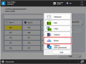 Voit myös rekisteröidä ryhmiä pikavalintapainikkeille skannaus- (Skannaa ja lähetä) tai faksinäytöstä.