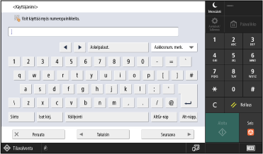 Syötä aakkosnumeerisia merkkejä käyttämällä käyttöpaneelin näppäimistöä ja numeronäppäimiä.