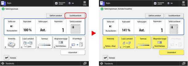 Kopiointiasetukset on määritetty, joten voit kopioida painamalla [