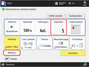 Syötä kopionäytössä kopioiden määrä ja paina [Mallikopio].