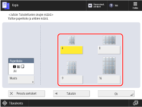 Kopiointisuhde asetetaan määritetyn paperikoon ja arkkien määrän mukaan.