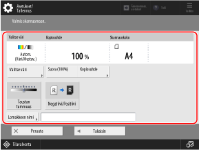 * Jos haluat määrittää taustapuolen käyttämällä samoja asetuksia kuin etupuolella, aseta ensin etupuoli ja valitse sitten [Sama kuin etupuolella].