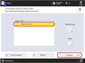 Valitse [Tallenna lomake]-näytössä lomakekuva ja paina [Tiedot]