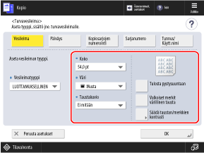 * Kun teet säädön käyttämällä kohdetta [Säädä taustan/merkkien kontrasti] [Turvavesileima]-näytössä, [Tulostusasetukset] ja [Alusta] eivät näy.