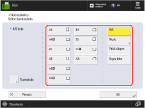 * Jos valitset [Vapaa koko], alkuperäinen voidaan sijoittaa vain syöttölaitteeseen. Lisäksi suhde on kiinteä 1:1 (100 %).