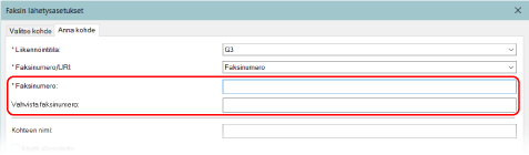 Jos ulkolinjan numero tarvitaan, lisää se faksinumeron eteen.
