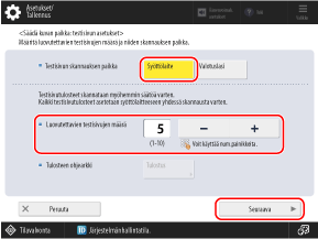 Syötä tulostettavien testisivujen määrä ja valitse [Seuraava].