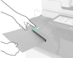) vasten pitkäarkkista paperia, joka on leikattu leveyteen 500–550 mm (19 3/4 – 21 5/8 tuumaa). Varmista samalla, että pitkäarkkinen paperi on kiinni lankakehikossa (
