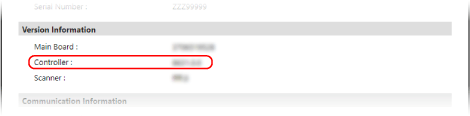Tarkista kohteen [Controller] versio kohdassa [Version Information].