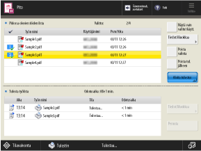 Kun painat [Val. kaikki (Maks.100)] kun asiakirjoja ei ole valittu, kaikki kohdassa [Pidossa olevien töiden lista] näkyvät asiakirjat valitaan.