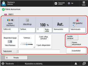 Voit peruuttaa usean arkin syötöntunnistuksen painamalla skannausnäkymässä [Lisäasetukset]